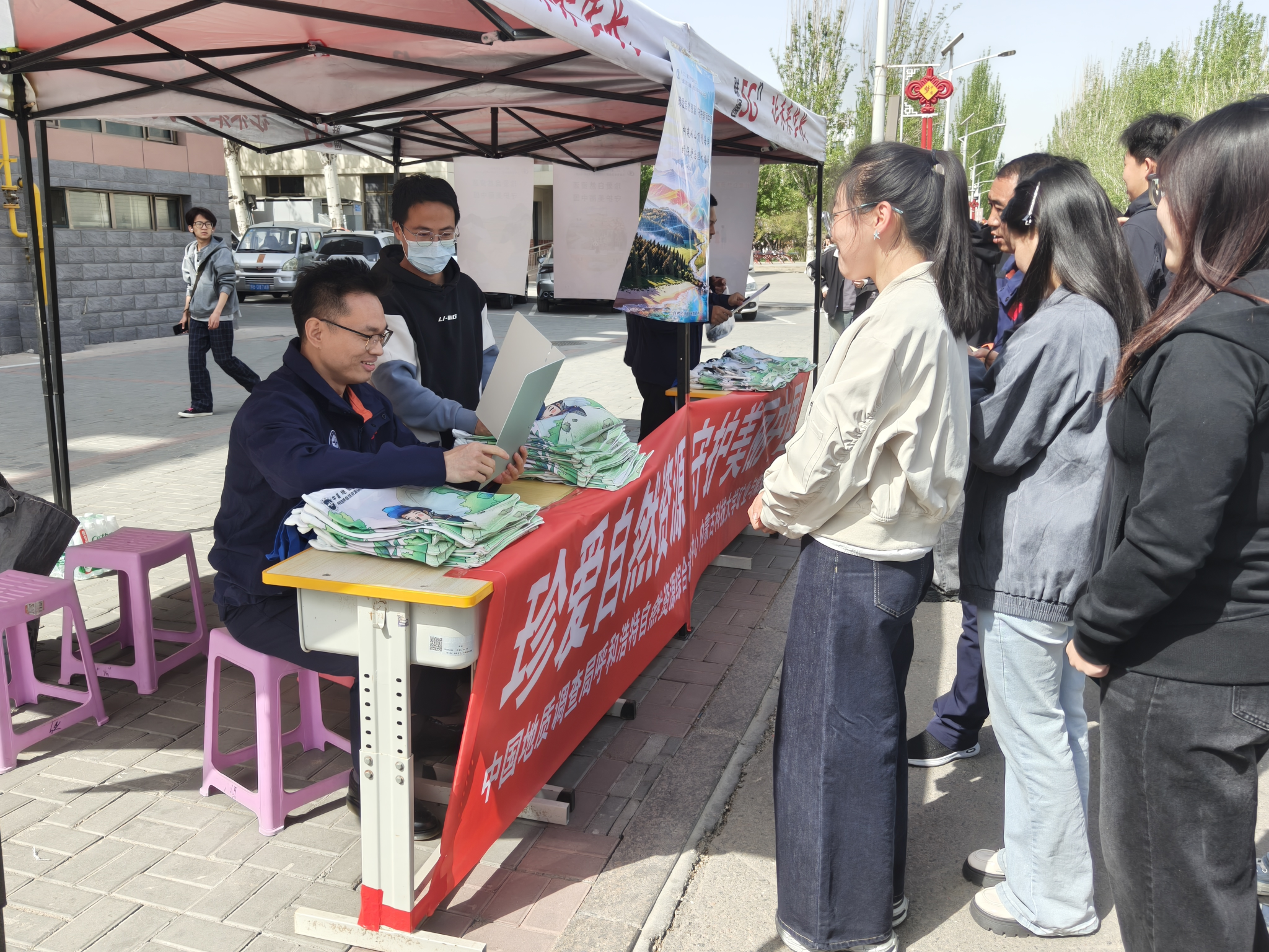 联合中国地质调查局呼和浩特自然资源综合调查中心于当日在内蒙古科技大学东校区成功举办了以“探索地球奥秘,守护绿色家园”为主题的系列科普宣传活动。活动通过展览展示、科普讲解、互动问答等多种形式,向师生及社会公众普及地球科学知识,倡导绿色低碳生活方式,推动形成人人参与地球保护的良好氛围。